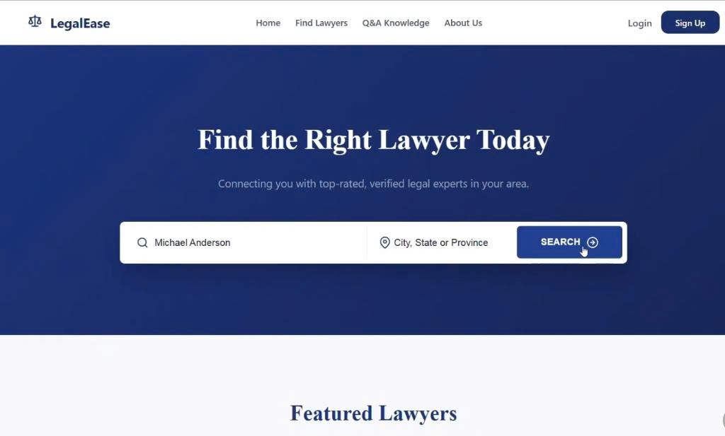 Dự án được xây dựng với mục tiêu giải quyết những hạn chế của các phương thức tìm kiếm dịch vụ pháp lý truyền thống. Thông qua hệ thống LegalEase, người dùng có thể dễ dàng tìm kiếm luật sư, đặt lịch tư vấn và theo dõi các thông tin pháp lý một cách nhanh chóng và minh bạch.