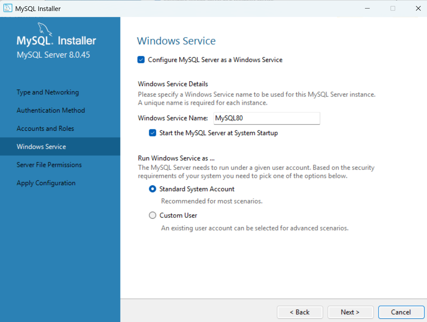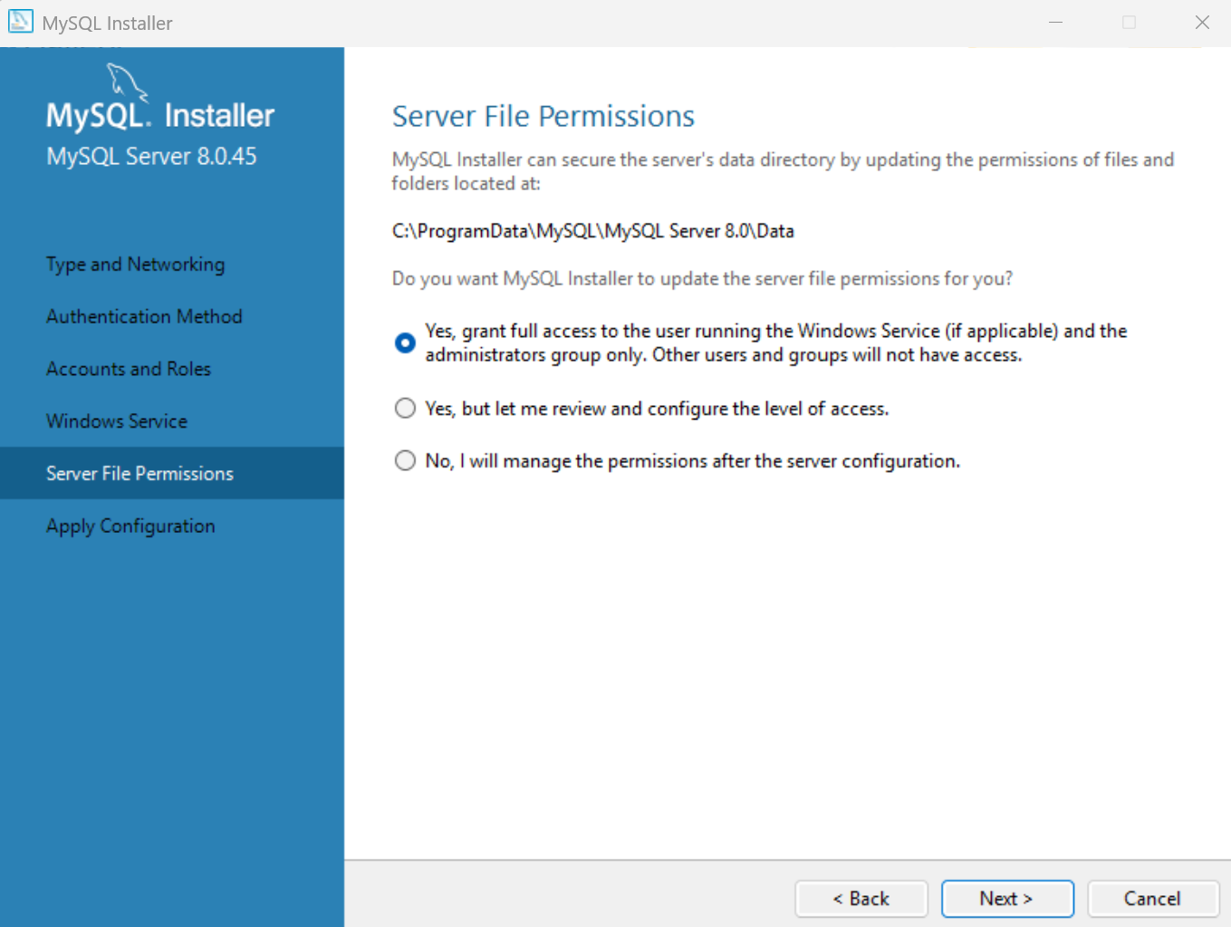 Bước 3.1: Cấu hình – MySQL Server
