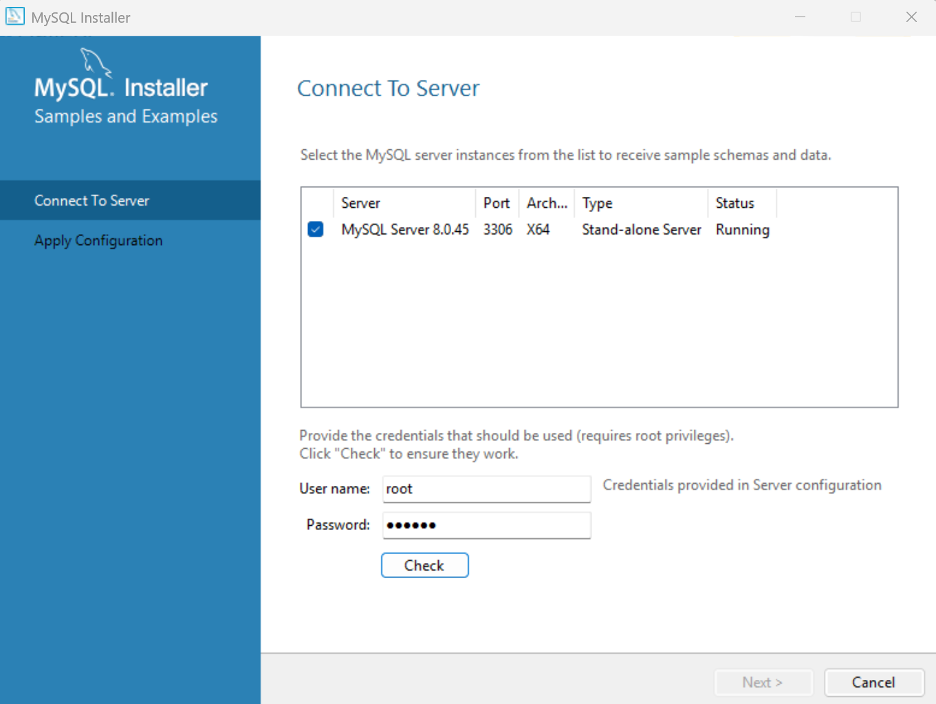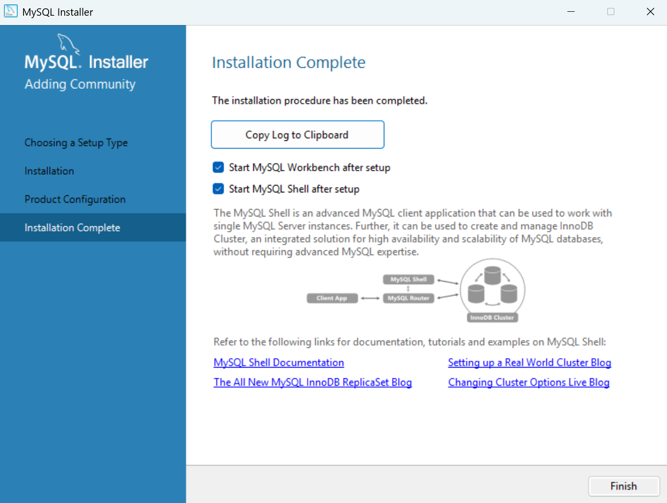 Lưu ý: Màn hình này sẽ được quay lại sau mỗi lần cấu hình như MySQL Router, Samples and Examples.