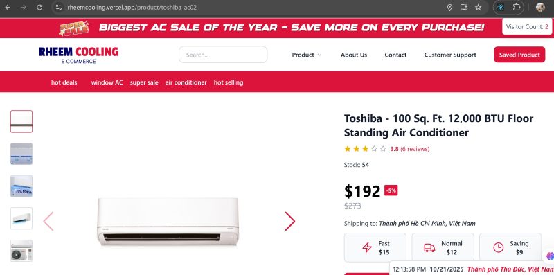 Website mua sắm điều hòa trực tuyến hiện đại RheemCooling