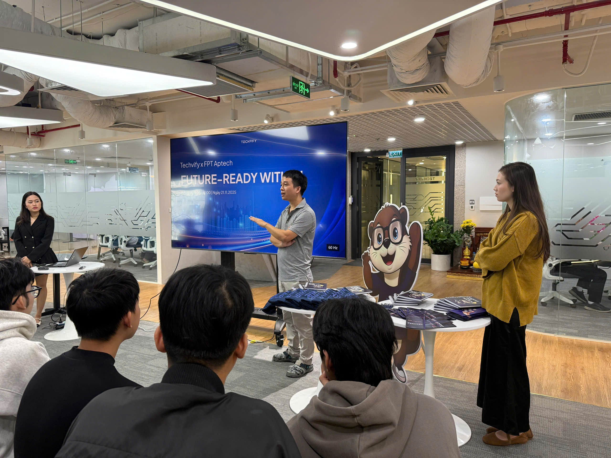 Sáng 21/11, hơn 30 sinh viên FPT Aptech Hà Nội đã có mặt tại TECHVIFY trong chương trình tham quan doanh nghiệp nhằm giúp các bạn hiểu rõ hơn về môi trường làm việc thực tế trong lĩnh vực công nghệ. TECHVIFY là một trong những đơn vị tiên phong về chuyển đổi số, phát triển phần mềm và giải pháp công nghệ, đem tới cho sinh viên góc nhìn chân thực về cách vận hành của một doanh nghiệp IT hiện đại.
