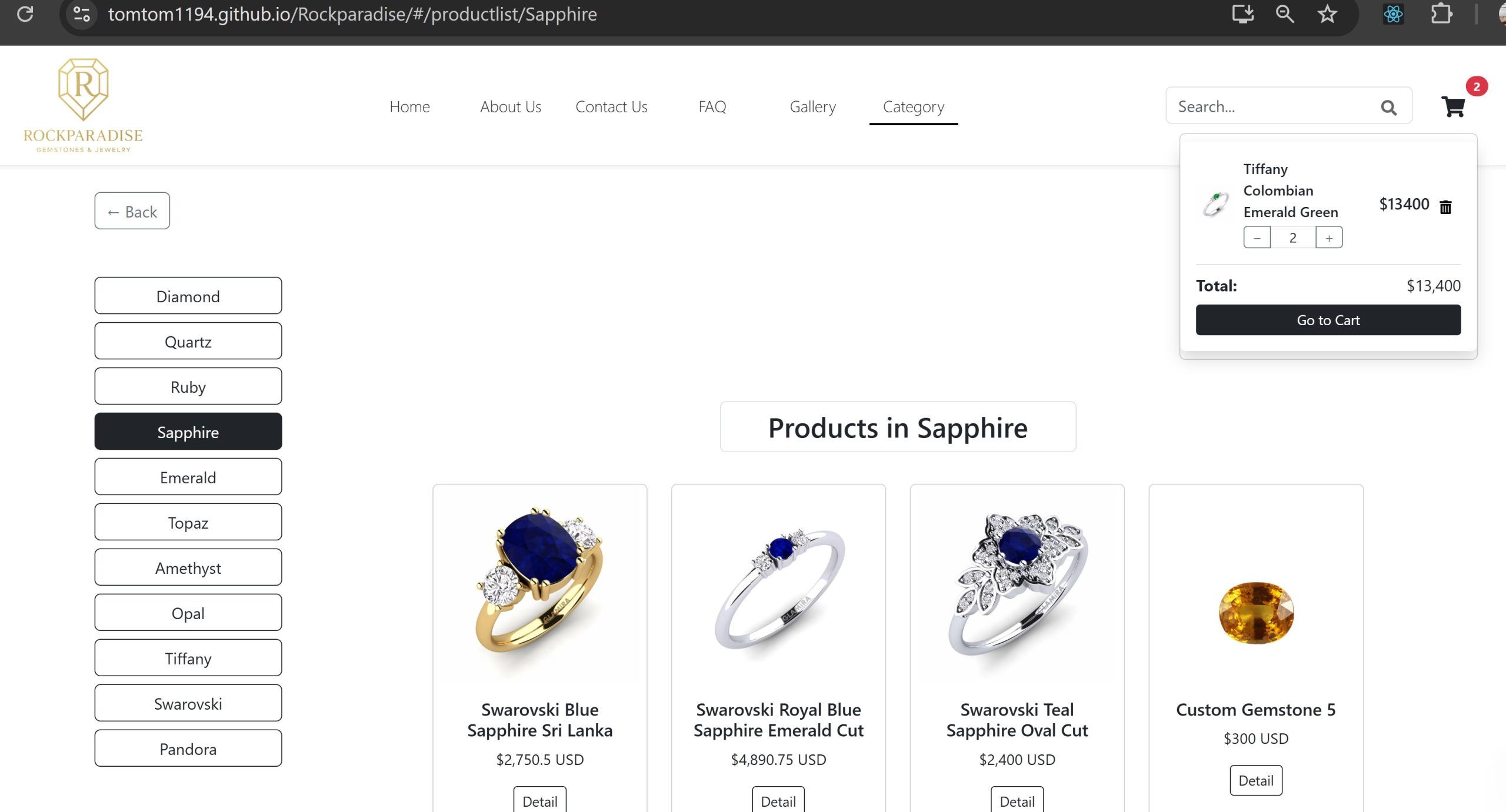RockParadise được phát triển với mục tiêu mang đến trải nghiệm mua sắm đá quý trực tuyến nhanh chóng, tiện lợi và an toàn. Website cho phép người dùng xem thông tin chi tiết từng mẫu trang sức, tìm kiếm theo nhu cầu, thêm sản phẩm vào giỏ và thanh toán trực tuyến. Nhóm hướng đến việc kết hợp giữa nghệ thuật của đá quý và công nghệ hiện đại, tạo ra một giao diện sang trọng, mạch lạc, phù hợp với dòng sản phẩm cao cấp.