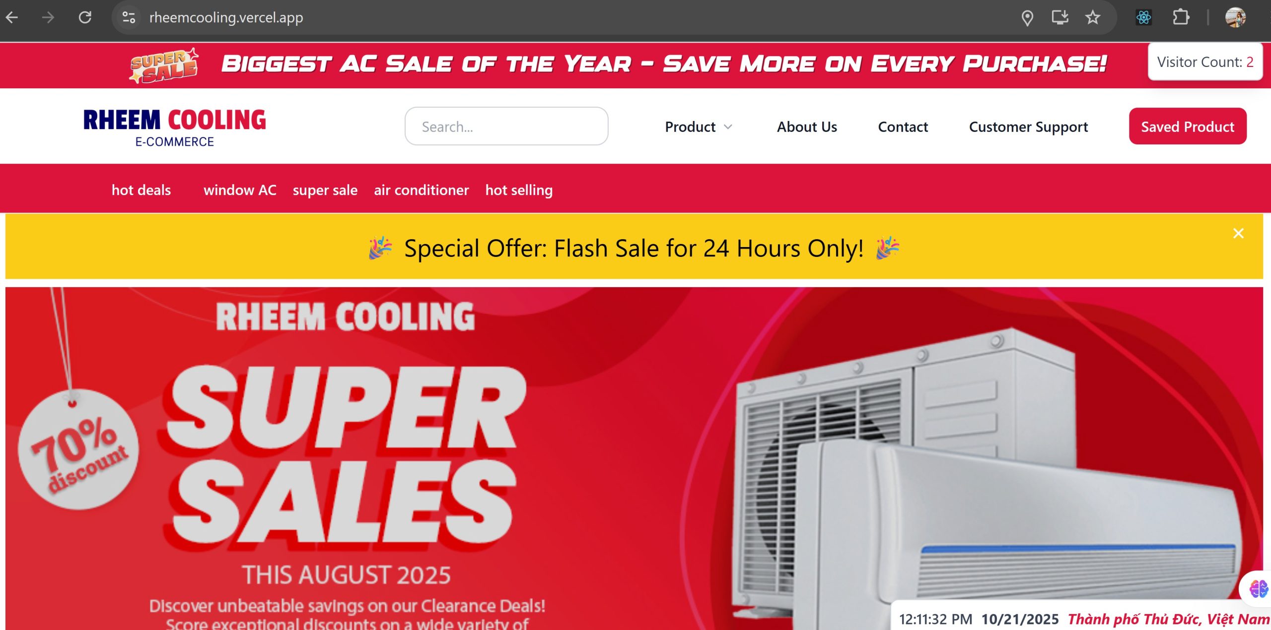 Trong thời đại chuyển đổi số, việc mua sắm và quản lý kinh doanh ngày càng được tối ưu hóa thông qua nền tảng trực tuyến. Từ thực tế đó, nhóm sinh viên năm nhất của FPT Aptech đã phát triển RheemCooling – một website thương mại điện tử chuyên cung cấp sản phẩm điều hòa không khí đa thương hiệu, giúp người dùng dễ dàng tìm kiếm, so sánh và lựa chọn thiết bị phù hợp với nhu cầu.